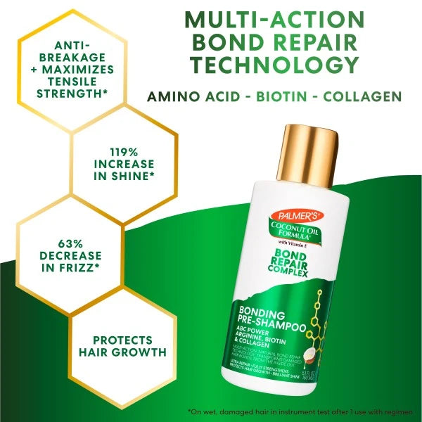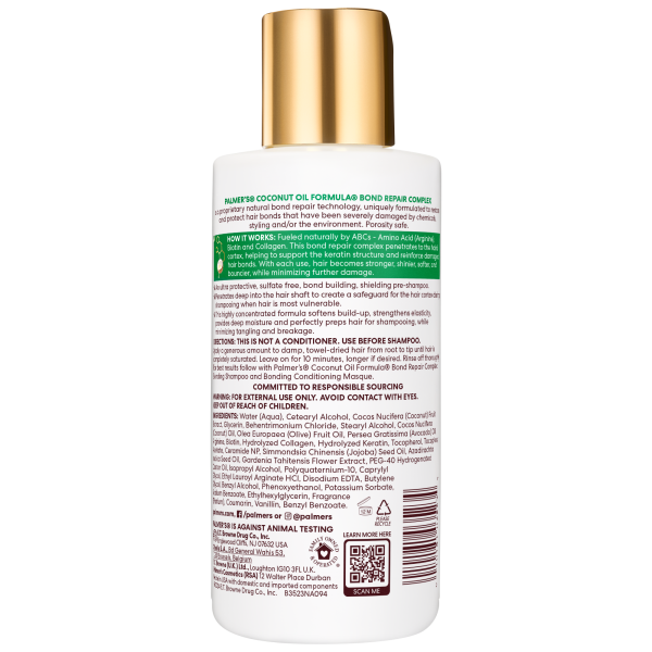 • Palmer's Coconut Oil Formula Bond Repair Complex is a proprietary natural bonding technology, uniquely formulated to restore and protect hair bonds that have been severly damaged by chemicals, styling and/or the environment