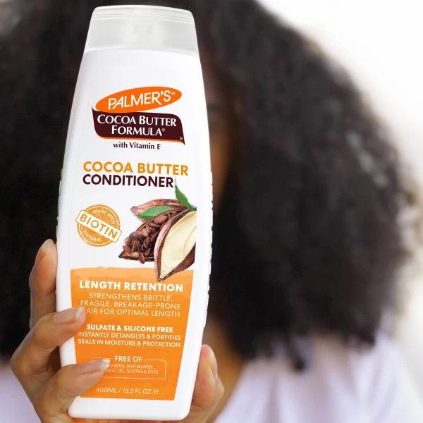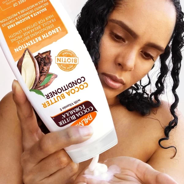 Palmer’s Cocoa Butter Formula® Length Retention system with Biotin, fully strengthens hair with powerhouse natural protectants that help block fragileness, brittleness, breakage and split ends, to help hair achieve its optimal length.