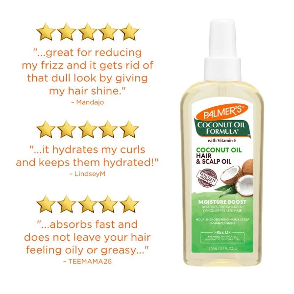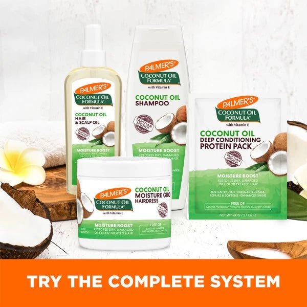 Palmer's® Coconut Oil Formula Moisture Boost system restores hair experiencing dryness or damage with natural reparatives that instantly and deeply lock in moisture from root to tip, visibly improving your hair’s condition after each use.