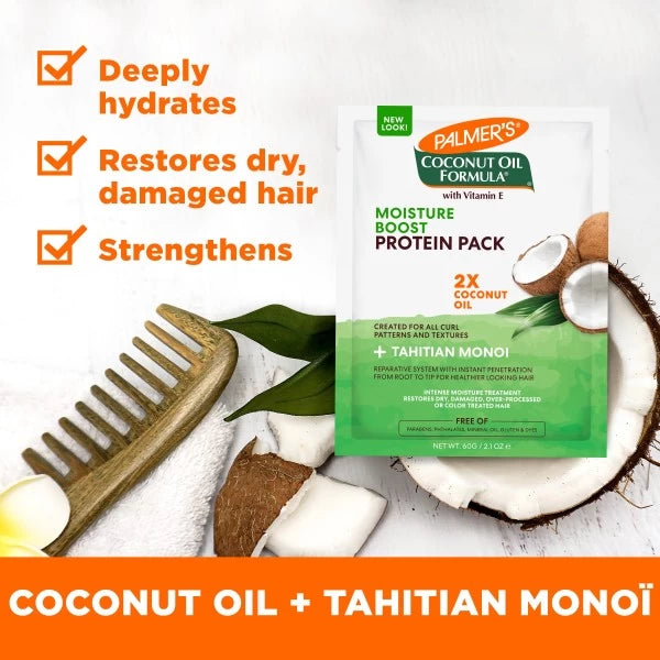 Palmer's® Coconut Oil Formula Moisture Boost system restores hair experiencing dryness or damage with natural reparatives that instantly and deeply lock in moisture from root to tip, visibly improving your hair’s condition after each use.