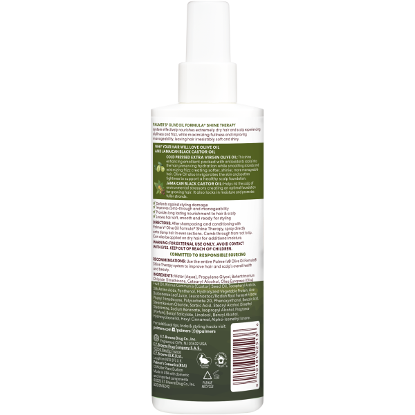 Palmer's Olive Oil Formula Shine Therapy Leave In Conditioner is a light sulfate free spray that softens, detangles and leaves hair perfectly prepped for styling.