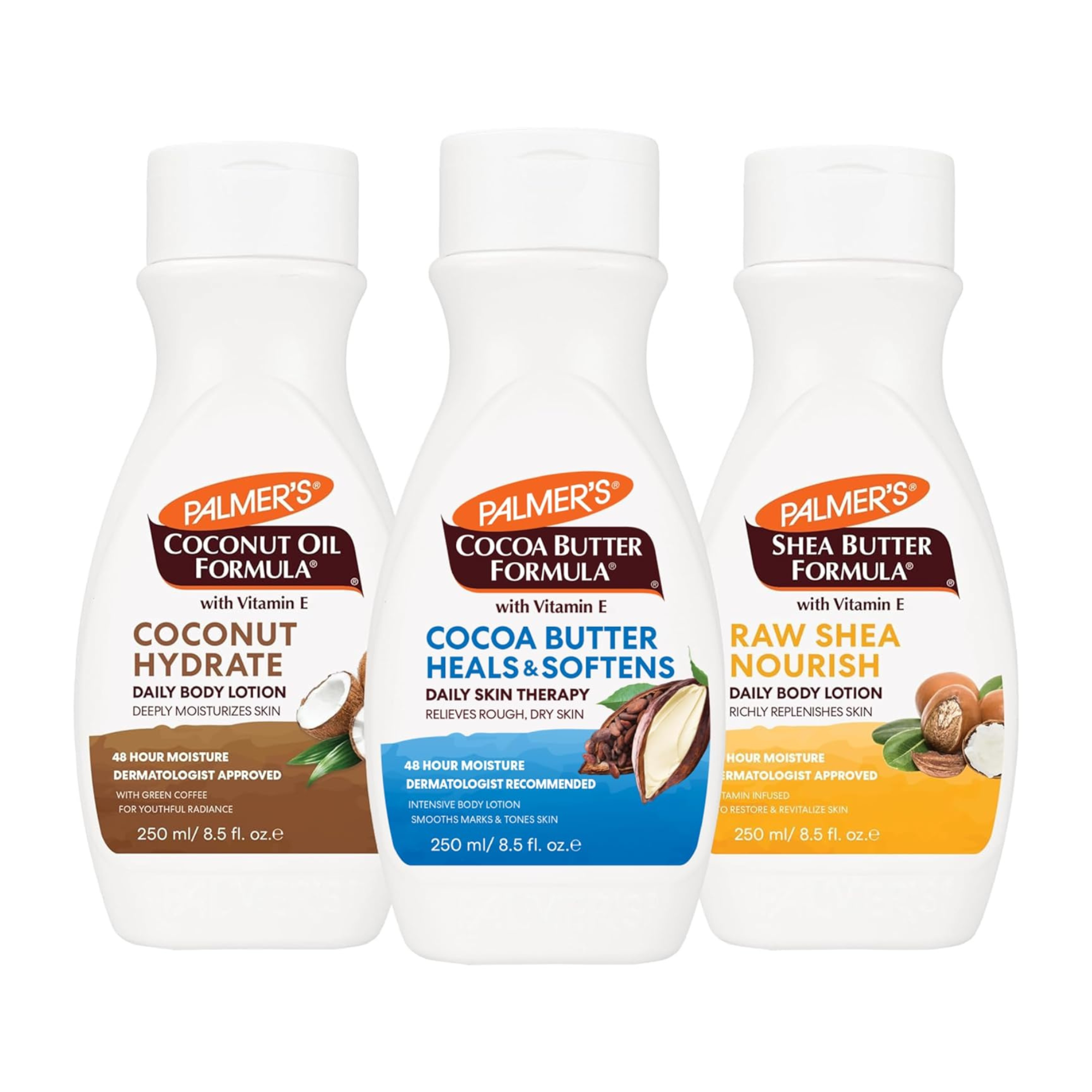 • Palmer's bundle of nourishing body lotions, enriched with Cocoa Butter, Coconut Oil, and Shea Butter, delivers 48-hour moisture to combat winter skin woes. Dive into superior head-to-toe moisturization, ensuring your skin stays nourished, hydrated, and silky smooth even in the coldest months.