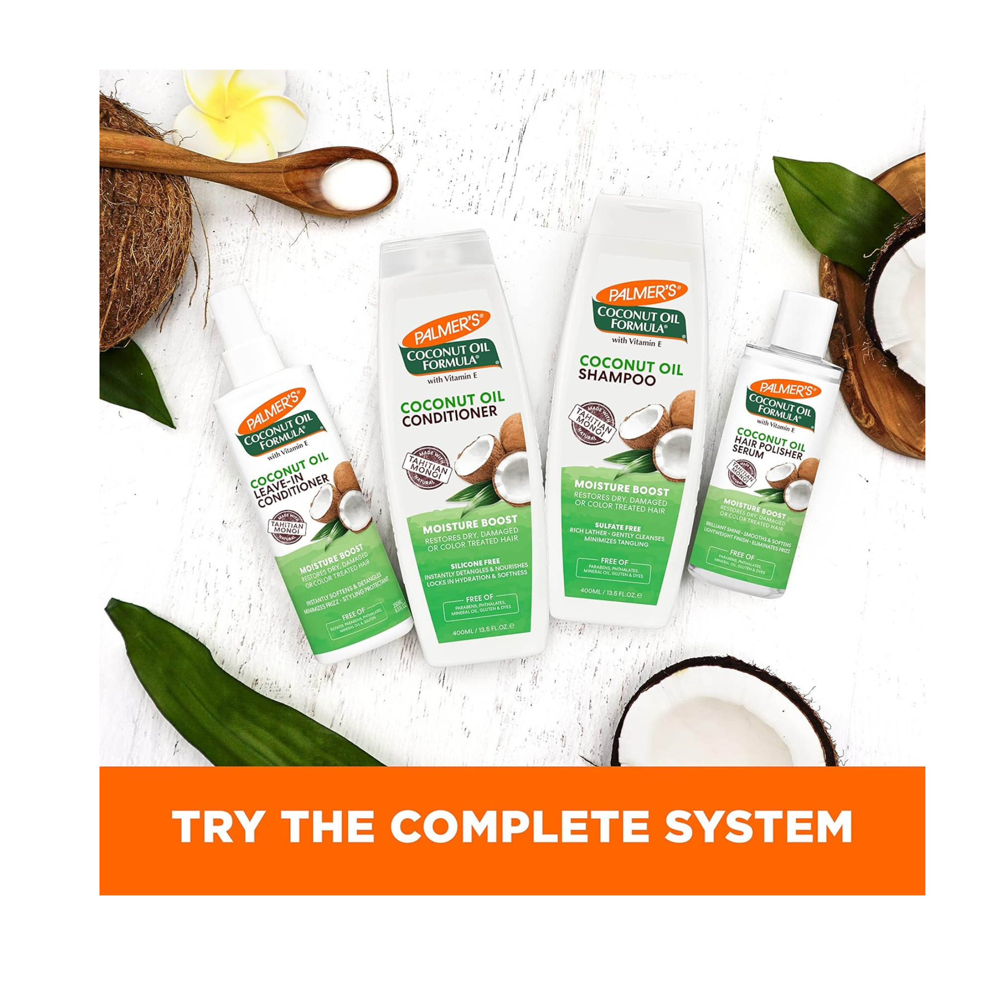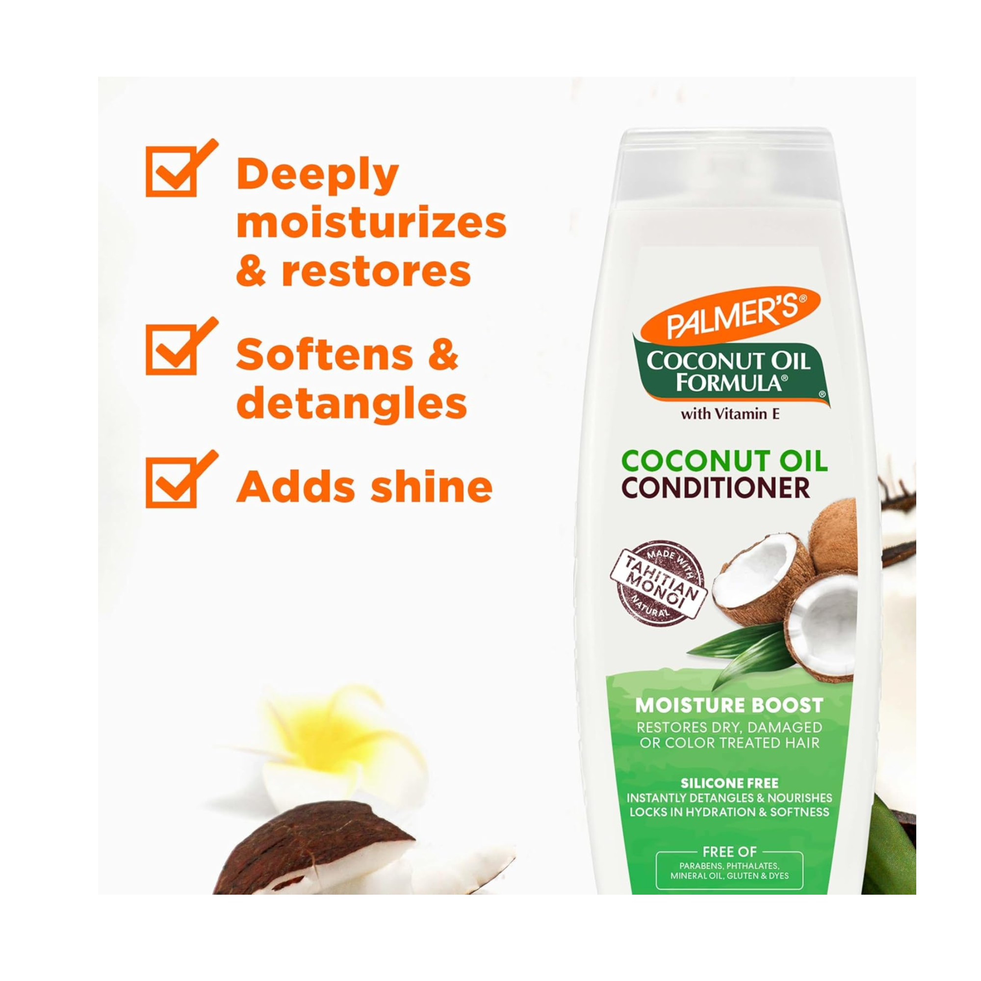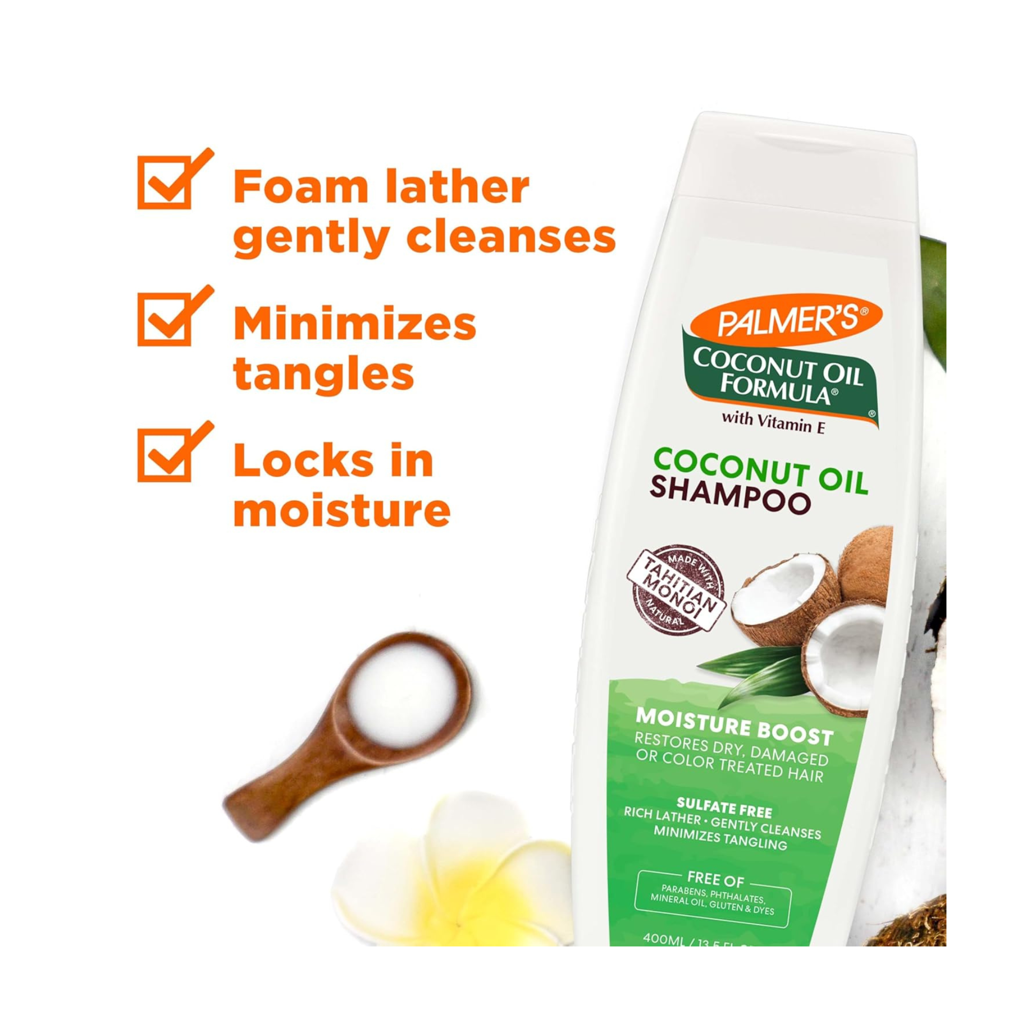• Experience the ultimate moisture boost with Palmer's Coconut Oil Formula Moisture Boost Shampoo and Conditioner Combo. The rich, creamy, and color-safe shampoo delicately cleanses, removing build-up and restoring your hair's natural moisture balance. It sets the stage for the conditioner, a luxurious, creamy formula that instantly envelops strands in deep moisture, enhancing softness, manageability, and leaving your hair looking silky, shiny, and healthier from root to tip.