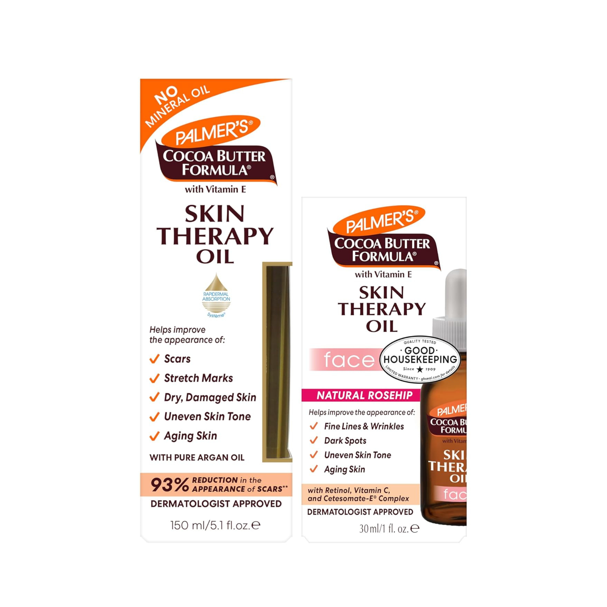 • Palmer's Cocoa Butter Formula Skin Therapy Oil is an advanced multi-purpose skin perfection product that can be used all over the body. This preservative-free, lightweight formula contains an exclusive blend of key ingredients formulated to help improve the appearance of scars, stretch marks, dry, damaged skin, uneven skin tone, aging skin and fine lines and wrinkles.